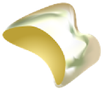 表にハイブリットセラミック、裏側にプラチナゴールドを使用しているため、馴染みやすい。耐久性が劣るため数年で変色の可能性がある。磨耗性があるため歯ぎしりのある方にお勧め。